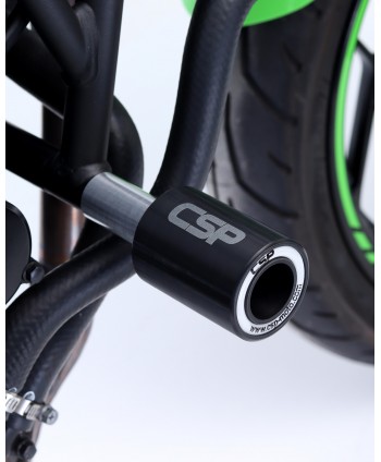 Crash pady podstawowe CSP do Kawasaki Z250SL zabezpieczają motocykl w przypadku przewrotki. Konstrukcja tego zestawu to jednoosiowy system, przy którym szpilka montażowa łączy wszystkie elementy zestawu.