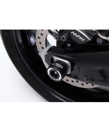 Crash pady CSP do Triumph Trident 660 zabezpieczają silnik i ramę podczas kolizji. Zestaw mocowany jest do motocykla przy pomocy dwóch śrub, dzięki czemu mniejsza siła jest przenoszona na elementy konstrukcyjne motocykla podczas uderzenia. W ofercie również crash pady przedniego zawieszenia oraz wahacza, które stanowią uzupełnienie crash padów podstawowych.