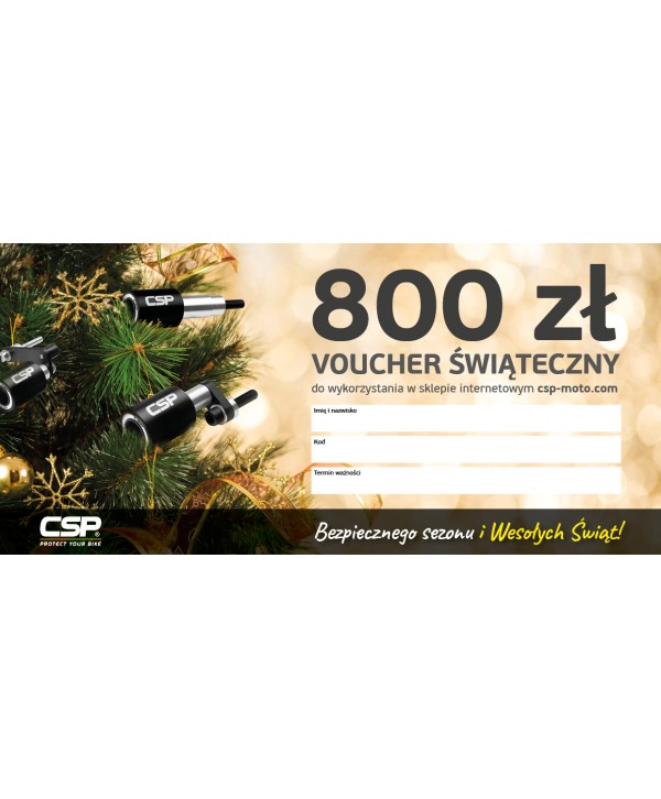 Spersonalizowany voucher świąteczny CSP to karta podarunkowa pozwalająca na zakup dowolnych produktów ochronnych z oferty platformy www.csp-moto.com